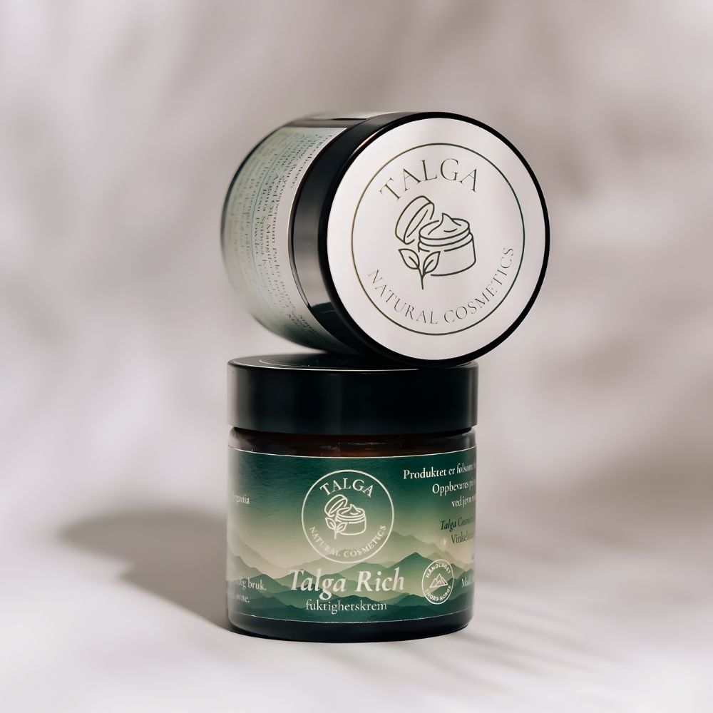 Talga Rich Body Butter er en vannfri og ekstra rik kroppskrem laget med gressforet norsk talg og næringsrike planteoljer. Den gir intens fuktighet, styrker hudbarrieren og beskytter huden mot tørr luft, kulde og varme. Perfekt for deg som sliter med tørr, sensitiv eller dehydrert hud på kroppen.